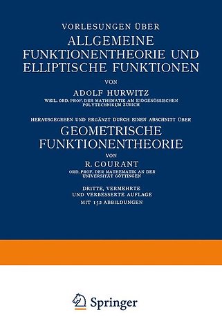 Erster Abschnitt. Allgemeine Theorie der Funktionen einer komplexen Veränderlichen.- Erstes Kapitel. Die komplexen Zahlen.- Zweites Kapitel. Die Potenzreihen.- Drittes Kapitel. Der Begriff der analytischen Funktion.- Viertes Kapitel. Untersuchung einiger spezieller analytischer Funktionen.- Fünftes Kapitel. Die Integration analytischer Funktionen.- Sechstes Kapitel. Die meromorphen Funktionen.- Siebentes Kapitel. Die Umkehrung der analytischen Funktionen.- Zweiter Abschnitt. Elliptische Funktionen.- Erstes Kapitel. Die doppeltperiodischen meromorphen Funktionen.- Zweites Kapitel. Die Theta-Funktionen.- Drittes Kapitel. Die elliptischen Funktionen Jacobis.- Viertes Kapitel. Die elliptischen Modulfunktionen.- Fünftes Kapitel. Elliptische Gebilde.- Sechstes Kapitel. Elliptische Integrale.- Siebentes Kapitel. Die Transformation der elliptischen Funktionen.- Dritter Abschnitt. Geometrische Funktionentheorie.- Erstes Kapitel. Vorbereitende Betrachtungen.- Zweites Kapitel. Die Grundlagen der Theorie der analytischen Funktionen.- Drittes Kapitel. Folgerungen aus der Cauchyschen Integralformel.- Viertes Kapitel. Spezielle Funktionen und ihre Singularitäten.- Fünftes Kapitel. Analytische Fortsetzung und Riemannsche Flächen.- Sechstes Kapitel. Die konforme Abbildung einfach zusammenhängender schlichter Gebiete.- Siebentes Kapitel. Spezielle Abbildungsfunktionen.- Achtes Kapitel. Die Verallgemeinerung des Riemannschen Abbildungssatzes. Das Dirichletsche Prinzip.- Neuntes Kapitel. Weitere Existenztheoreme der Funktionentheorie.