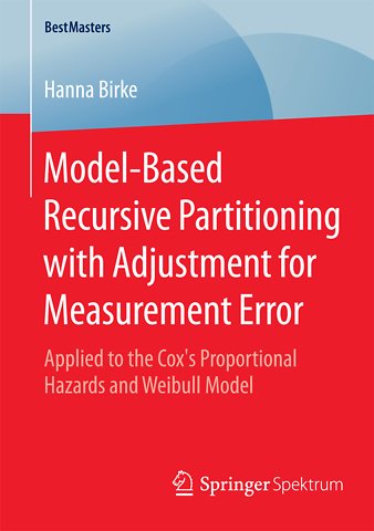 ​Model-based recursive partitioning (MOB) provides a powerful synthesis between machine-learning inspired recursive partitioning methods and regression models. Hanna Birke extends this approach by allowing in addition for measurement error in covariates, as frequently occurring in biometric (or econometric) studies, for instance, when measuring blood pressure or caloric intake per day. After an introduction into the background, the extended methodology is developed in detail for the Cox model and the Weibull model, carefully implemented in R, and investigated in a comprehensive simulation study.