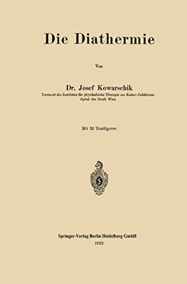 Erstes Kapitel. Die Physik der Diathermie.- Zweites Kapitel. Das Instrumentarium der Diathermie.- Drittes Kapitel. Die Technik der Diathermie.- Viertes Kapitel. Die biologischen Wirkungen der Diathermie.- Fünftes Kapitel. Die therapeutischen Indikationen der Diathermie.- 9. Die Kombination von Diathermie und Radiotherapie.- 10. Die Kombination der Diathermie mit anderen Methoden.- Sechstes Kapitel. Die chirurgische Diathermie und die Lichtbogenoperation.- 1. Die Hochfrequenzströme in der Chirurgie.- 2. Die chirurgische Diathermie.- 3. Die Lichtbogenoperation.