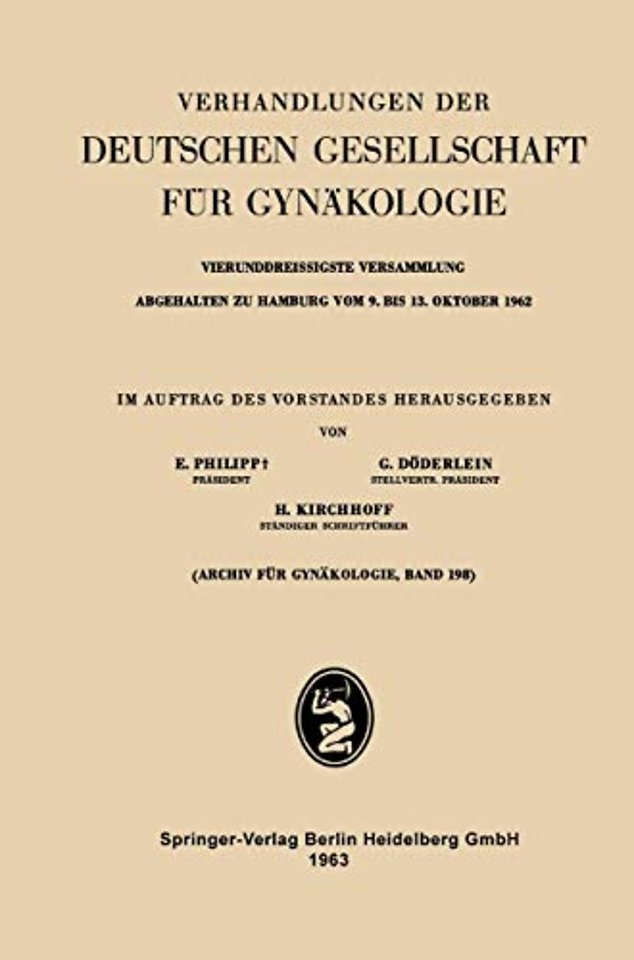Eröffnungsansprache des Vizepräsidenten der Gesellschaft G. Döderlein-Jena zur 34. Tagung der Deutschen Gesellschaft für Gynäkologie Hamburg, 9.–13. Oktober 1962.- Funktionelle Morphologie der Placenta.- Die Placenta als Lunge des Fetus.- Störungen der intrauterinen Atmung.- Vorträge.- Die Hormonbildung der Placenta und ihre Bedeutung für die Frucht.- Vorträge.- Untersuchungen über den Kohlenhydrat-Stoffwechsel der Placenta.- Vorträge.- Die Befruchtung beim Menschen.- Vorträge.- Die fetale Indikation für die Schnittentbindung.- Vorträge.- Die entwicklungsgeschichtlichen Grundlagen der Gonaden und der Intersexualität.- Die Morphologie der fehlgebildeten und fehlgesteuerten weiblichen Keimdrüse.- Genotyp, Chromatinbefund und Chromosomen bei Intersexen.- Echter Hermaphroditismus und Pseudohermaphroditismus.- Vorträge.- Das adrenogenitale Syndrom.- Die Gonadendysgenesie.- Das Stein-Leventhal-Syndrom.- Vorträge.- Der Vakuum-Extraktor.- Vakuum-Extraktion.- Vorträge.- Rede des Herrn Ministerpräsidenten Kai Uwe von Hassel aus Anlaß der 34. Tagung der Deutsehen Gesellschaft für Gynäkologie.- Besonderheiten der Geburtshilfe und Gynäkologie in Entwicklungsländern.- Vorträge.