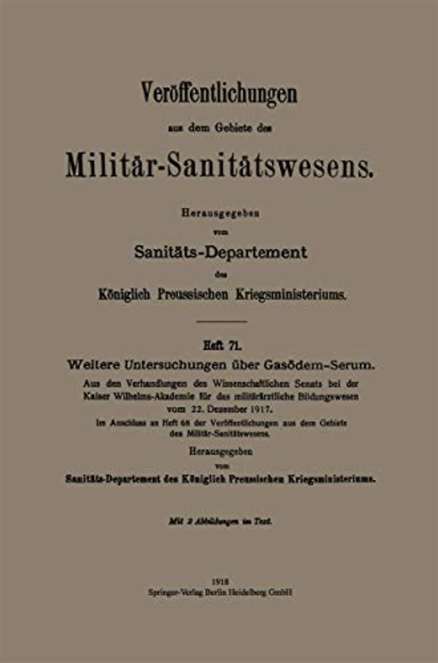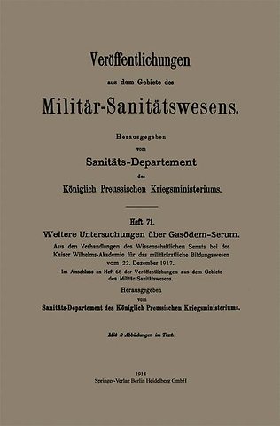 Aus den Verhandlungen des Wissenschaftlichen Senats bei der Kaiser Wilhelms-Akademie für das militärärztliche Bildungswesen vom 22. Dezember 1917. Im Anschluss an Heft 68 der Veröffentlichungen aus dem Gebiete des Militär-Sanitätswesens
