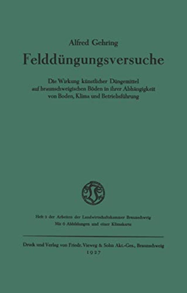 Die Wirkung künstlicher Düngemittel auf braunschweigischen Böden in ihrer Abhängigkeit von Boden, Klima und Betriebsführung