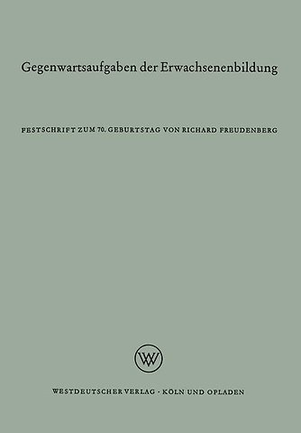 Probleme der Erwachsenenbildung.- Die verbindende Aufgabe der Erwachsenenbildung in Deutschland und in der Welt.- Staatsbürgerliche Bildung heute.- Fernstudium als neuer Bildungsweg.- Die Aufgaben des Bibliothekars in der Erwachsenenbildung.- Universität und Erwachsenenbildung.- Berufsbildung und Volkshochschule.- Unsere Autoren.