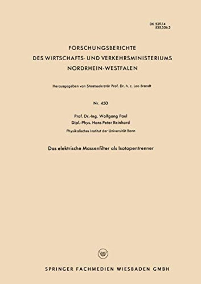 Das elektrische Massenfilter als Isotopentrenner