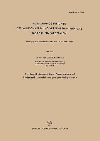Gliederung.- I. Einleitung.- II. Versuchsdurchführung.- III. Der Angriff eisengesättigter Zinkschmelzen auf kohlenstoffhaltiges Eisen.- IV. Der Angriff eisengesättigter Zinkschmelzen auf schwefelund phosphorhaltiges Eisen.- V. Zusammenfassung.- VI. Literaturverzeichnis.