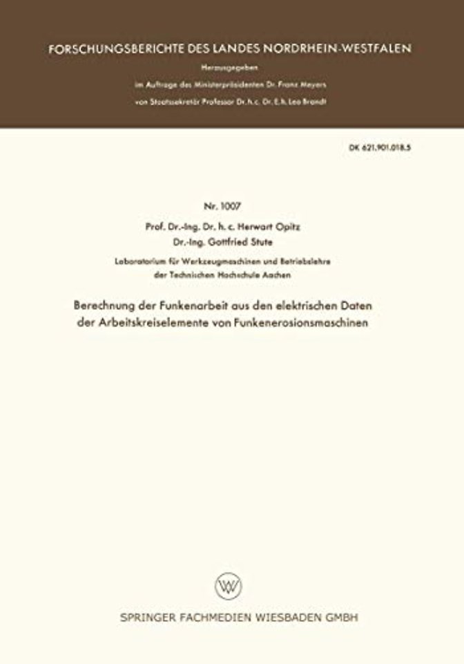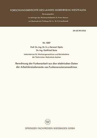 Gliederung.- 1. Zusammenfassung der Abhängigkeiten des Bearbeitungsergebnisses von Art und Größe der Funkenleistung.- 2. Der Arbeitskreis von Funkenerosionsmaschinen.- 3. Die Abhängigkeit der Entladungsfolge vom Aufbau des Ladekreises.- 4. Die Abhängigkeit der Entladungsarbeit vom Aufbau des Entladekreises.- 5. Zusammenfassung.