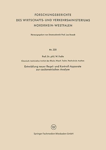 Gliederung.- I. Zusammenfassung.- II. Elektrochemische Grundlagen der Coulometrie.- 1. Allgemeines.- 2. Spezielle elektrochemische Probleme bei der elektrolytischen Erzeugung von Wasserstoffionen, Hydroxylionen und von Jod.- III. Stromquellen und Meßgeräte für die Coulometrie.- 1. Allgemeines.- 2. Coulometrie.- 3. Konstantstromquellen.- IV. Coulometrische Titrationen mit konstantem Strom und außerhalb des Titriergefäßes erzeugten Reagenzien.- 1. Allgemeines.- 2. Beschreibung der Apparatur.- 3. Durchführung von Testversuchen.- 4. Kritik der Versuchsergebnisse.- V. Darstellung der Resultate vor der Öffentlichkeit.- VI. Literaturverzeichnis.