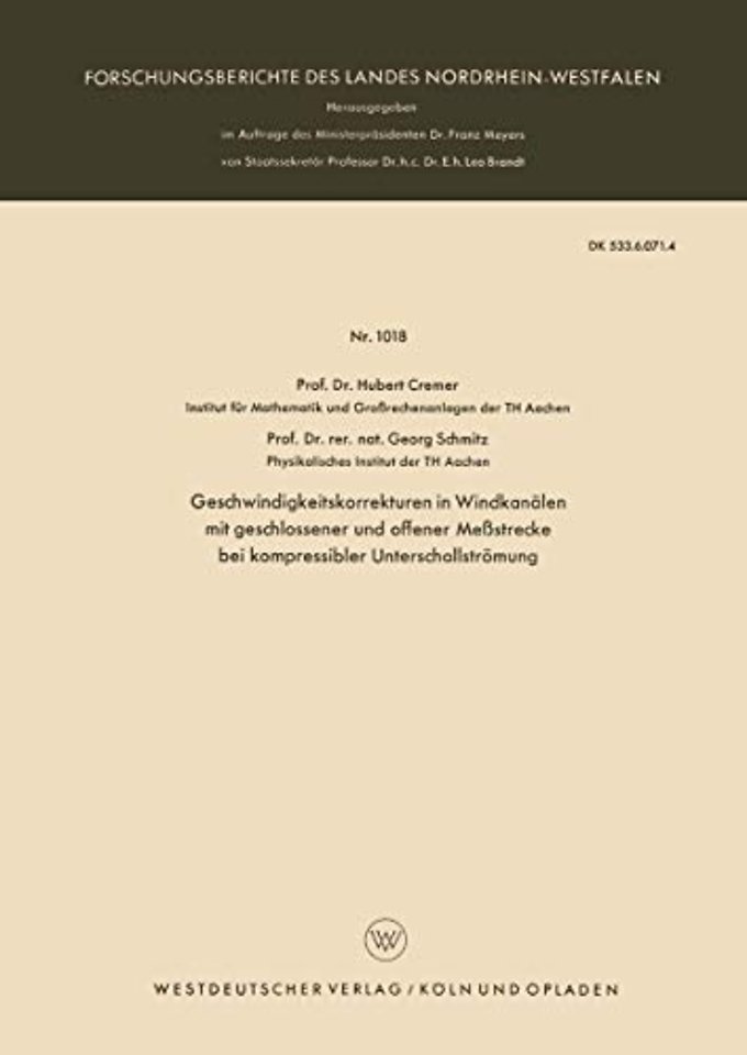Geschwindigkeitskorrekturen in Windkanälen mit geschlossener und offener Meßstrecke bei kompressibler Unterschallströmung