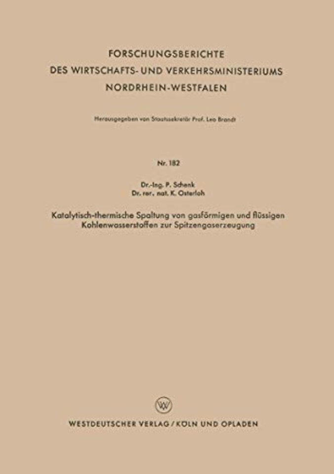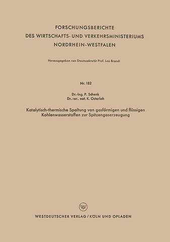 Gliederung.- I. Entwicklung der Spitzengasabgabe und Möglichkeiten zur Deckung der Spitzenbelastungen durch herkömmliche Erzeugungsmaßnahmen.- II. Theoretische Betrachtungen über die Spaltung von gasförmigen und flüssigen Kohlenwasserstoffen.- 1. Eigenschaften der Kohlenwasserstoffe.- 2. Spaltreaktionen.- III. Beschreibung der Versuchsanlage.- IV. Versuchsergebnisse.- 1. Reine Dampfspaltung.- 2. Kombinierte Dampf-Luftspaltung (thermisch-katalytisch).- V. Wirtschaftlichkeit des Verfahrens.- VI. Zusammenfassung.