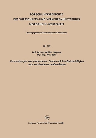 Gliederung.- I. Meßmethoden und -geräte.- II. Ermittlung der Gleichmäßigkeitsschwankungen nach verschiedenen Methoden.- III. Ermittlung der Garnfestigkeit in bezug auf die Weiterverarbeitung.- IV. Untersuchung des Garnaufbaues.- V. Zusammenfassung.- VI. Literaturverzeichnis.