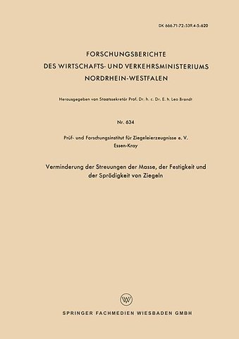 Gliederung.- A. Einleitung.- I. Der Gütestand von Mauerziegeln.- II. Aufgabe der vorliegenden Forschungsarbeit.- B. Die vom Rohstoff und dessen Verarbeitung ausgehenden Einflüsse.- I. Rohstoffseitige Einflußgrößen.- II. Aufbereitungseinflüsse bei Naßverarbeitung.- III. Formgebungseinwirkungen bei Naßverpressung.- C. Einflüsse bei Trockenverpressung.- D. Übersicht von Maßänderungen im Gange der Produktion.- E. Einflußnahme von Trocknungsvorgängen.- F. Die Einflüsse des Brennvorganges.- I. Die Einsetzweise im Ofen.- II. Aufheizungseinflüsse.- III. Einflußgröße der Brenntemperatur.- IV. Ursache der Temperaturstreuungen.- V. Beseitigung der Brenntemperaturstreuungen durch ther mostatisch geregelte Brennstoffaufgabe u.Sackungsmessung.- VI. Der Kühlvorgang.- VII. Einwirkung dei Ofenkonstruktion.- G. Verladung und Transport.- H. Zusammenfassung des Forschungsberichtes.- I. Schlußbemerkung.