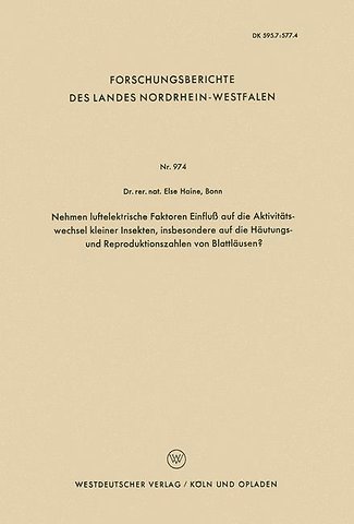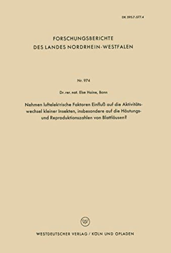 Nehmen luftelektrische Faktoren Einfluß auf die Aktivitätswechsel kleiner Insekten, insbesondere auf die Häutungs- und Reproduktionszahlen von Blattläusen?