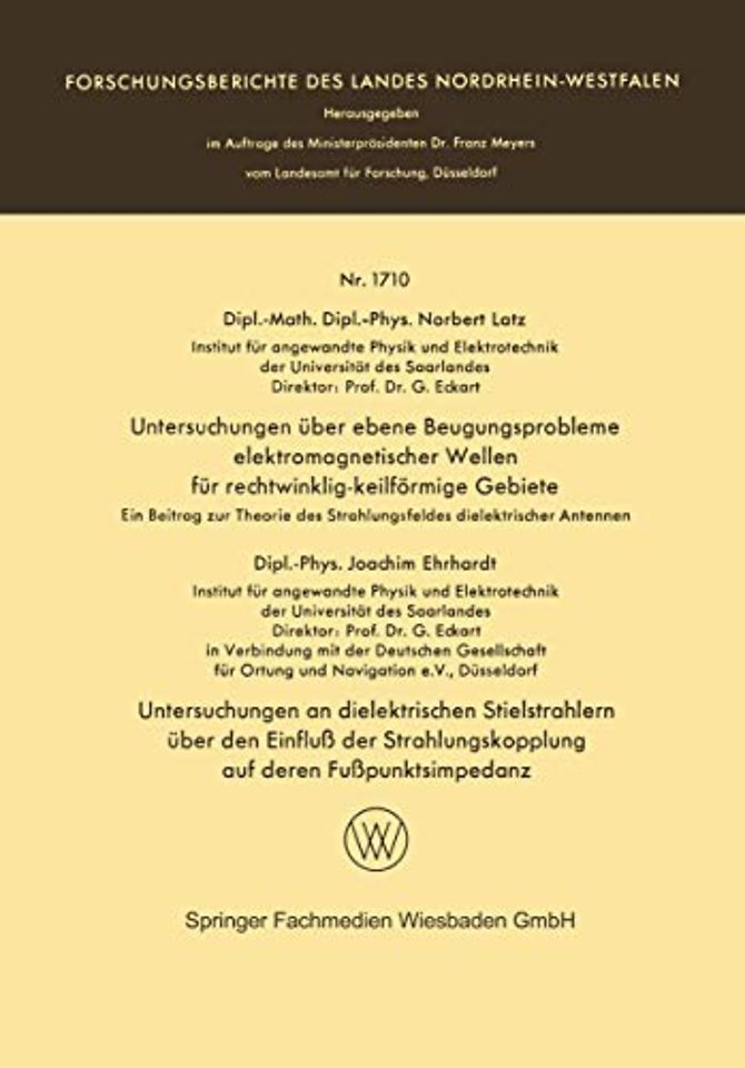 Untersuchungen über ebene Beugungsprobleme elektromagnetischer Wellen für rechtwinklig-keilförmige Gebiete. Untersuchungen an dielektrischen Stielstrahlern über den Einfluß der Strahlungskopplung auf deren Fußpunktsimpedanz