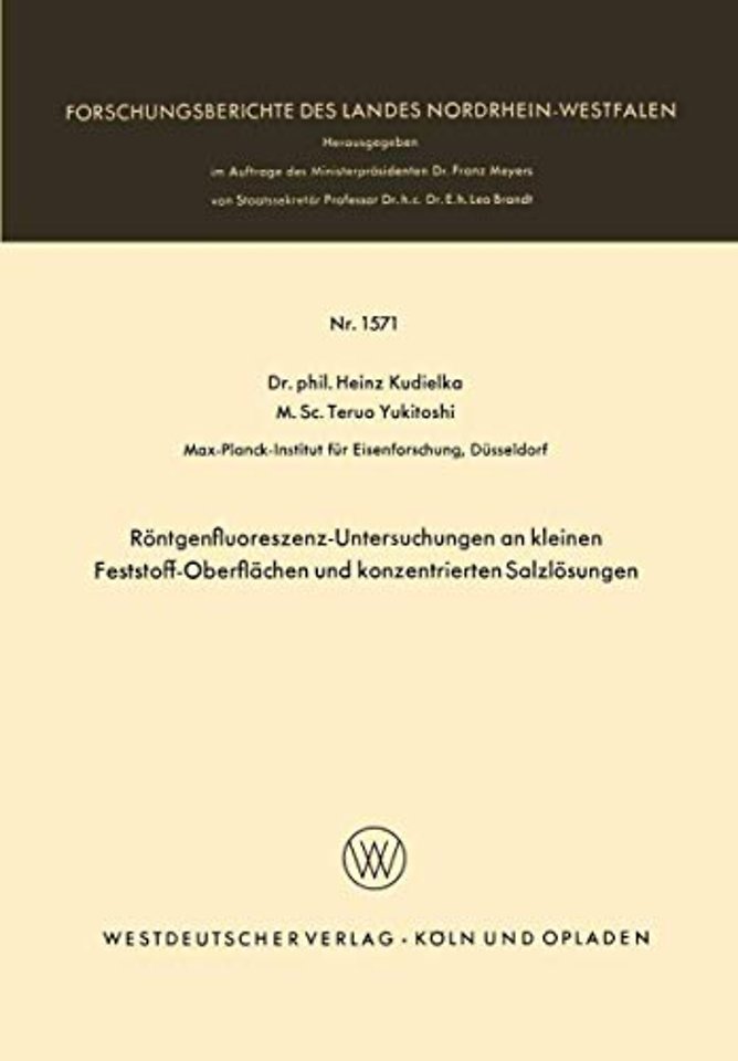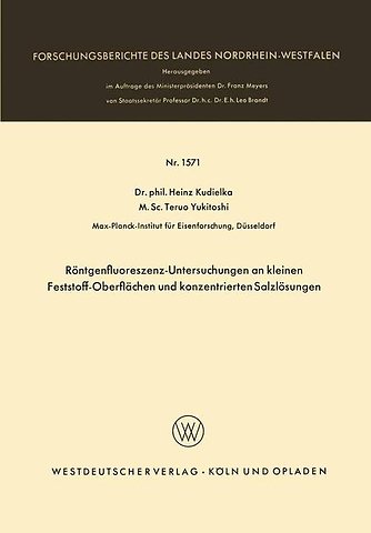 II. Versuchsanordnung.- III. Röntgen-Fluoreszenz-Untersuchungen an kleinen Probenoberflächen.- IV. Röntgen-Fluoreszenzuntersuchungen an wäßrigen Salzlösungen mit mehreren Komponenten.- V. Zusammenfassung.- VI. Anhang.- Tabellen 1–13.