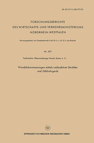 Gliederung.- A. Wanddickenmessungen mittels radioaktiver Strahlen und Zählrohrgerät.- B. Entwicklung eines Gerätes zur Messung des Mengendurchsatzes durch Rohre mittels radioaktiver Strahlung.