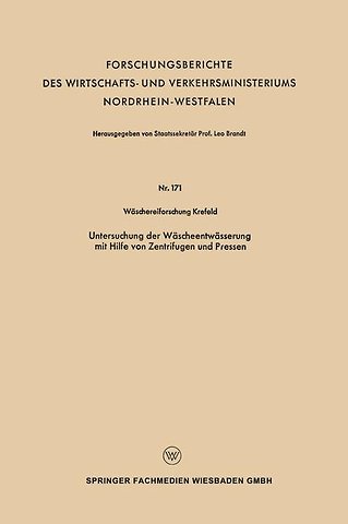 Gliederung.- I. Einleitung.- II. Untersuchungen an Wäschezentrifugen.- III. Untersuchungen an Wäschepressen.- IV. Zusammenfassung.- V. Literaturverzeichnis.