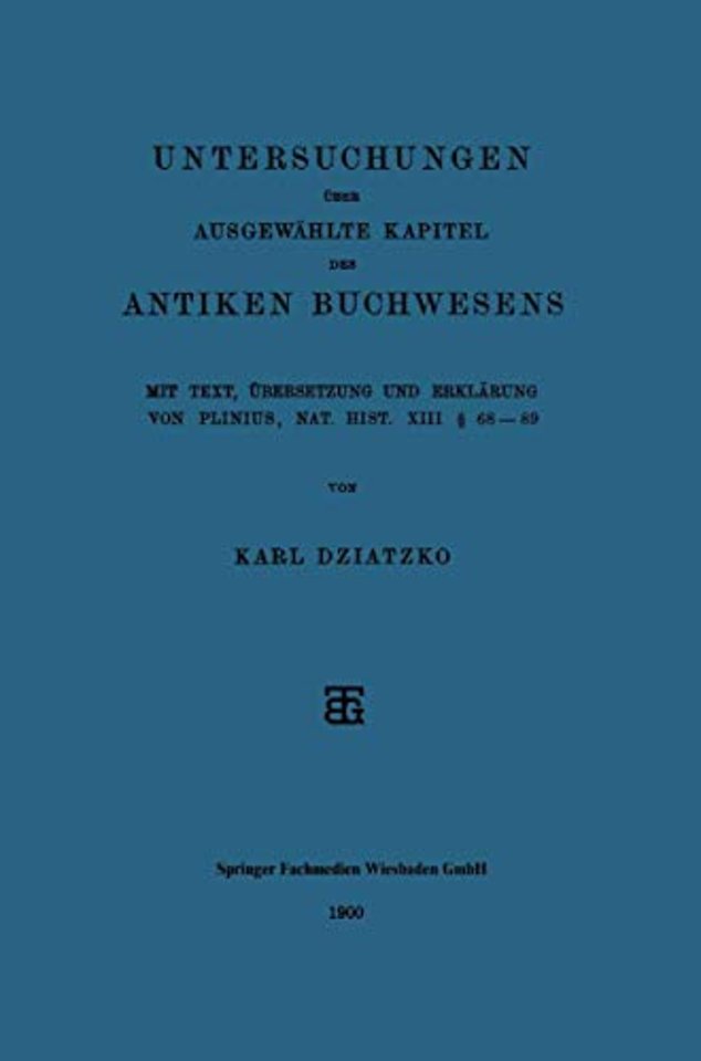 Untersuchungen über Ausgewählte Kapitel des Antiken Buchwesens
