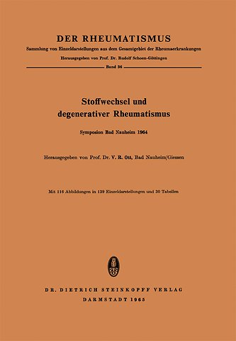 Vorträge 1–3, Vorsitz.- 1. Histochemische Modelluntersuchungen zur Pathogenese des Rheumatismus.- 2. Über Keratosulfate.- 3. Molekularpathologie des degenerativen Rheumatismus.- Vorträge 4–7, Vorsitz.- 4. Über Veränderungen des Mesenchymstoffwechsels durch Umweltfaktoren, durch Hormone und bei rheumatischen Erkrankungen.- 5. Degenerative Gelenkerkrankungen bei Stoffwechselkrankheiten.- 6. Biochemische Veränderungen in der Synovialflüssigkeit bei degenerativen Gelenkerkrankungen.- 7. Feingewebliche Untersuchungen über die Ursachen degenerativer Veränderungen des Bindegewebes.- Vorträge 8–11, Vorsitz.- 8. Polyarthrose et arthrose primitive à la lumière des observations cliniques.- 9. Stoffweehselstörangen des Knorpels und ihre Beziehungen zur Arthrose.- 9a. Experimentelle Untersuchungen über den Knorpelstoffweehsel.- 10. Troubles métaboliques et maladies dégénératives de la colonne vertébrale.- 11. Muskelinnendruck und 131J-Clearance beim Fibrositis-Syndrom.- Vorträge 12–14, Vorsitz.- 12. Anomalien des Phenylalanin- und Tyrosinstoffwechsels und ihre Bedeutung für die Entstehung der Gelenkkrankheiten.- 13. Zur Pathogenese der Ochronose.- 14. Les arthropathies diabétiques.- Vorträge 15–18, Vorsitz.- 15. Epidemiologie der degenerativen Gelenkerkrankungen.- 16. Schilddrüsentätigkeit und degenerativer Rheumatismus.- 17. Gelenkveränderungen bei Harnsäuregieht.- 18. Intramuskuläre Fibrositis als Stoffweehselproblem.- Schlußwort.- Schlußansprache.- Namenverzeichnis.