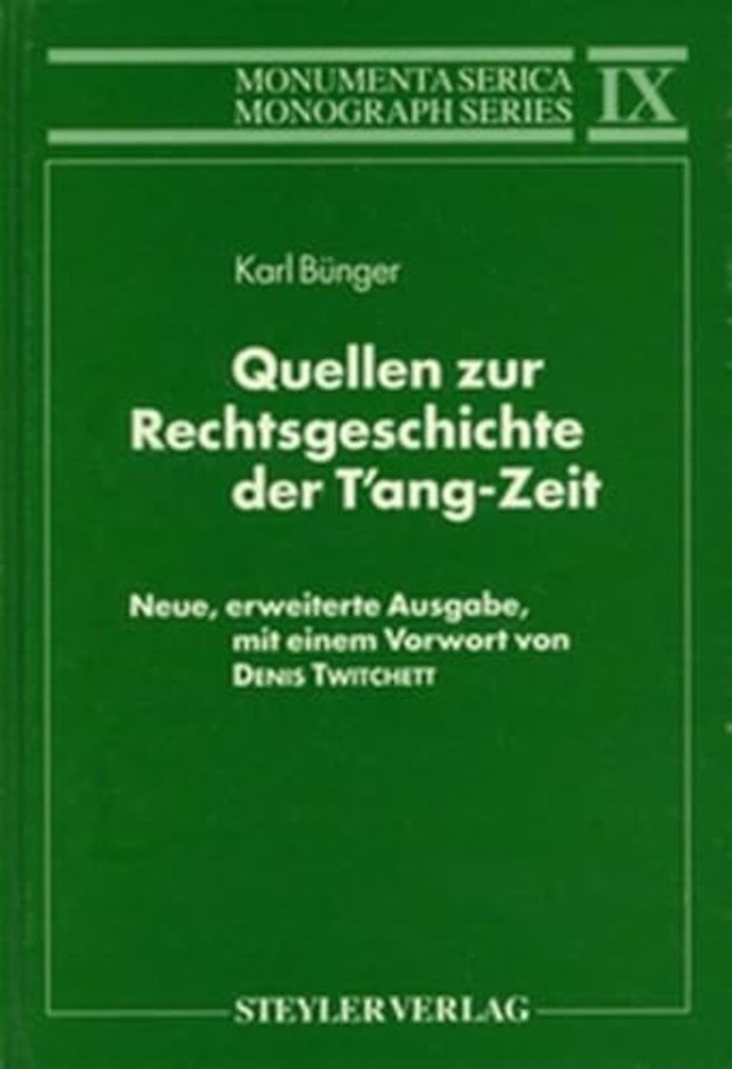 Dr. Bunger's book remains a classic that is still as valuable and as reliable a guide as it was. Its introduction is clearly written and to the point: the translations remain precise and reliable, and the texts Dr. Bunger choses to translate will always remain the most important selection of major sources for students of T'ang law."