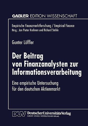 1 Einleitung.- 2 Informationsmärkte, Wertpapieranalysten und die Bedeutung von Ertragsschätzungen.- 2.1 Informationsmärkte aus kapitalmarkttheoretischer Sicht.- 2.2 Erwerb, Verarbeitung und Verbreitung von Informationen durch Finanzanalysten.- 3 Zur Qualität der Intermediation durch Finanzanalysten.- 3.1 Prognoserationalität als Beurteilungskriterium.- 3.2 Prognosequalität als Entscheidungsvariable der Analyseinstitute.- 3.3 Störungen der Intermediärfunktion.- 3.4 Empirische Analyse der Effizienz von Ertragsschätzungen.- 4 Zur Effizienz der Verarbeitung von Ertragsschätzungen durch den Aktienmarkt.- 4.1 Informationsverarbeitung aus kapitalmarkttheoretischer Sicht.- 4.2 Analyse der kurzfristigen Marktreaktion auf Prognoserevisionen.- 4.3 Analyse der langfristigen Marktreaktion auf Prognoserevisionen.- 5 Schlußbemerkungen.