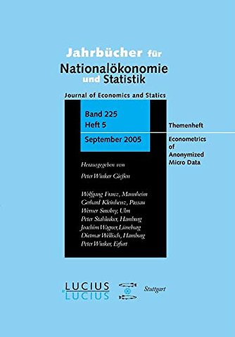 Econometrics of Anonymized Micro Data – Sonderheft 5/2005 Jahrbücher für Nationalökonomie und Statistik