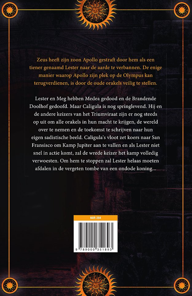 Hazel, Reyna, Frank, Tyson, Ella en veel andere oude vrienden hebben Apollo’s hulp nodig om de aanval te overleven. Helaas ligt het antwoord op hun verlossing in de vergeten tombe van een Romeinse heerser… nog meedogenlozer dan de keizers van het Triumviraat.