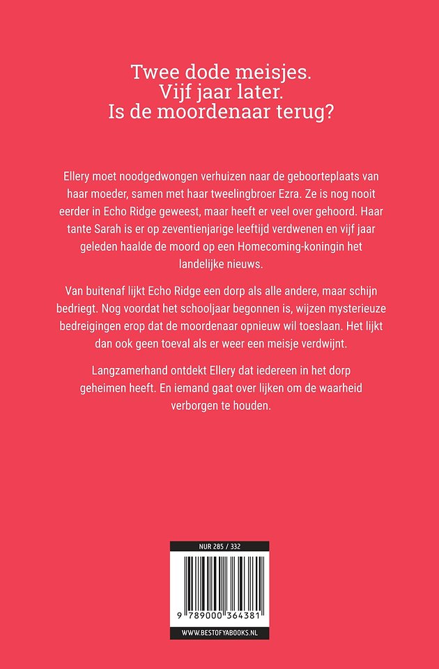 Ellery en haar tweelingbroer Ezra moeten noodgedwongen verhuizen naar de geboorteplaats van hun moeder. Lang geleden is hun tante Sarah daar verdwenen – een zaak die nooit is opgelost en waar in de familie nooit over gesproken wordt. Algauw ontdekt Ellery dat er pas nog een meisje is verdwenen. Net als Sarah was dit meisje homecoming queen op school, en niet lang daarna worden ook de meisjes die dit jaar genomineerd zijn bedreigd. Ellery is een van de kandidaten en besluit zelf op onderzoek uit te gaan. Ze wordt daarbij geholpen door Malcolm, een jongen van school die ze stiekem wel leuk vindt, maar die ook meer lijkt te weten dan hij doet voorkomen. Langzaam maar zeker komt Ellery dichter bij de waarheid. Maar dan vindt er nog een verdwijning plaats en deze keer wel heel dichtbij…