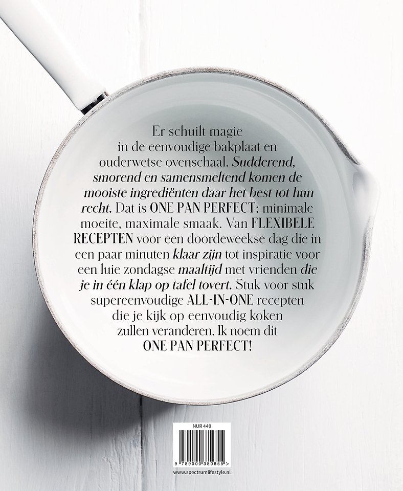 'Er is iets magisch aan een bescheiden bakplaat of die goeie ouwe ovenschotel; ik zou dit het wonder van het eenpansgerecht willen noemen. Daar, in de hectiek van het dagelijkse leven, leren ingrediënten elkaar borrelend en sudderend kennen en komt het beste in hen naar boven. En dat is waar het bij “the One” om draait: minimale poespas voor een maximale smaak. Van flexibele doordeweekse maaltijden die je binnen enkele minuten in elkaar kunt draaien, tot luie zondagse feestelijke gerechten die ook zo op tafel staan. Ik noem dit het "one-pan"-wonder. En ik kan niet wachten om dit met je te delen.'