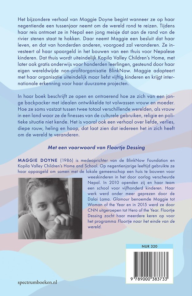 Het bijzondere verhaal van Maggie Doyne begint wanneer ze op haar negentiende een tussenjaar neemt om de wereld rond te reizen. Tijdens haar reis ontmoet ze in Nepal een jong meisje dat aan de rand van de rivier stenen staat te hakken. Daar neemt Maggie een besluit dat haar leven, en dat van honderden anderen, voorgoed zal veranderen. Ze investeert al haar spaargeld in het bouwen van een thuis voor Nepalese kinderen. Dat thuis wordt uiteindelijk Kopila Valley Children’s Home, met later ook gratis onderwijs voor honderden leerlingen, gesteund door haar eigen wereldwijde non-profitorganisatie BlinkNow. Maggie adopteert met haar organisatie uiteindelijk maar liefst vijftig kinderen en krijgt internationale erkenning voor haar duurzame projecten.