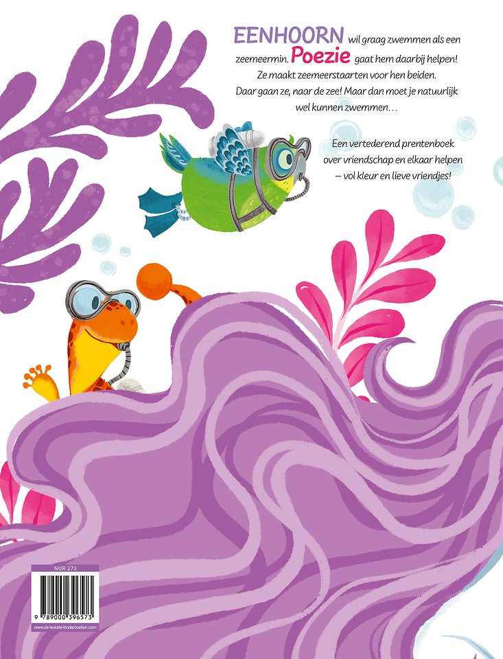 Eenhoorn wil graag zwemmen als een zeemeerman en Poeziehoorn gaat hem daarbij helpen! Poeziehoorn maakt zeemeerstaarten voor hen beiden en daar gaan ze, naar de zee! Maar dan moet je natuurlijk wel kunnen zwemmen... Eenhoorn wordt er een beetje onzeker door. Weet Poeziehoorn nu ook hoe ze Eenhoorn kan steunen?