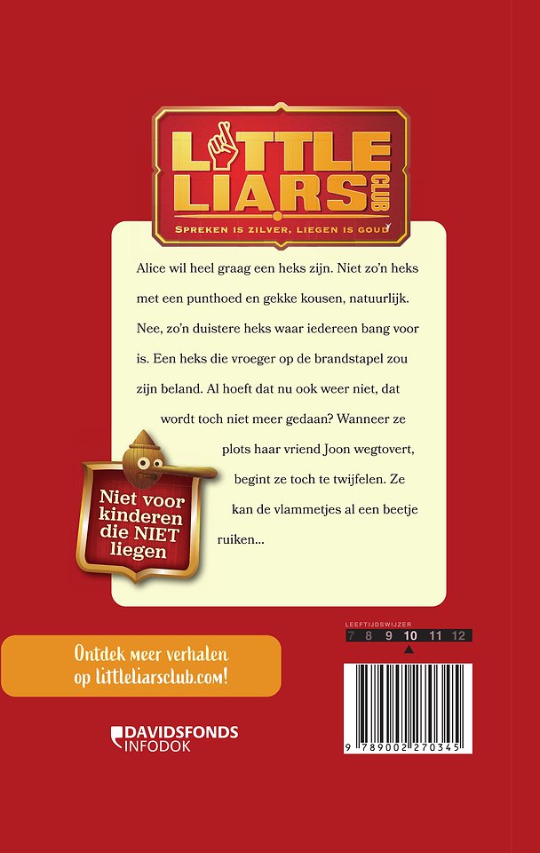Alice wil heel graag een heks zijn. Niet zo’n heks met een punthoed en gekke kousen, natuurlijk. Nee, zo’n duistere heks waar iedereen bang voor is. Een heks die vroeger op de brandstapel zou zijn beland. Al hoeft dat nu ook weer niet, dat wordt toch niet meer gedaan? Wanneer ze plots haar vriend Joon wegtovert, begint ze toch te twijfelen. Ze kan de vlammetjes al een beetje ruiken…