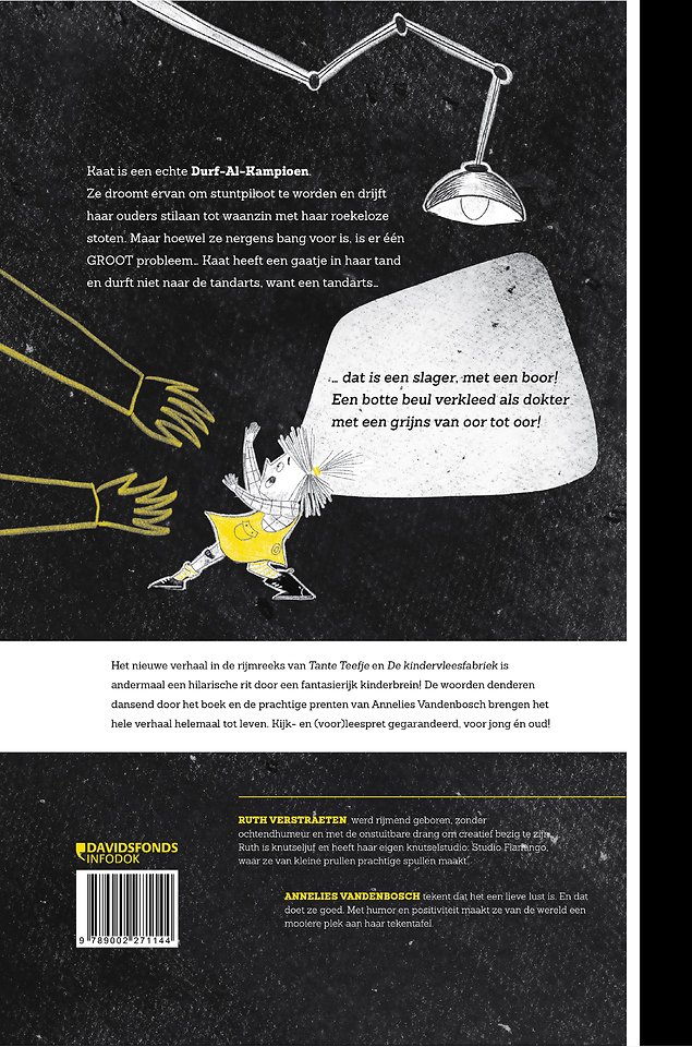 Kaat is een echte Durf-Al-Kampioen. Ze droomt ervan om stuntpiloot te worden en drijft haar ouders stilaan tot waanzin met haar roekeloze stoten. Maar hoewel ze nergens bang voor is, is er één GROOT probleem... Kaat heeft een gaatje in haar tand en durft niet naar de tandarts, want een tandarts... dat is een slager, met een boor! Een botte beul verkleed als dokter met een grijns van oor tot oor!