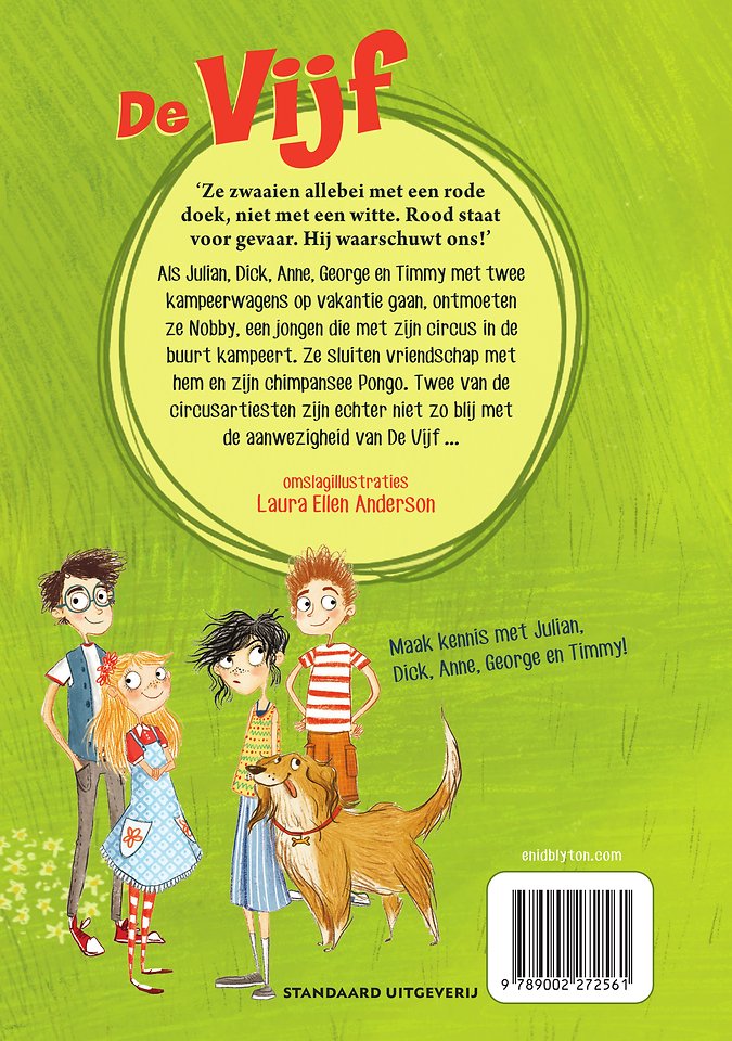 Als Julian, Dick, Anne, George en Timmy met twee kampeerwagens op vakantie gaan, ontmoeten ze Nobby, een jongen die met zijn circus in de buurt kampeert. Ze sluiten vriendschap met hem en zijn chimpansee Pongo. Twee van de circusartiesten zijn echter niet zo blij met de aanwezigheid van De Vijf ...