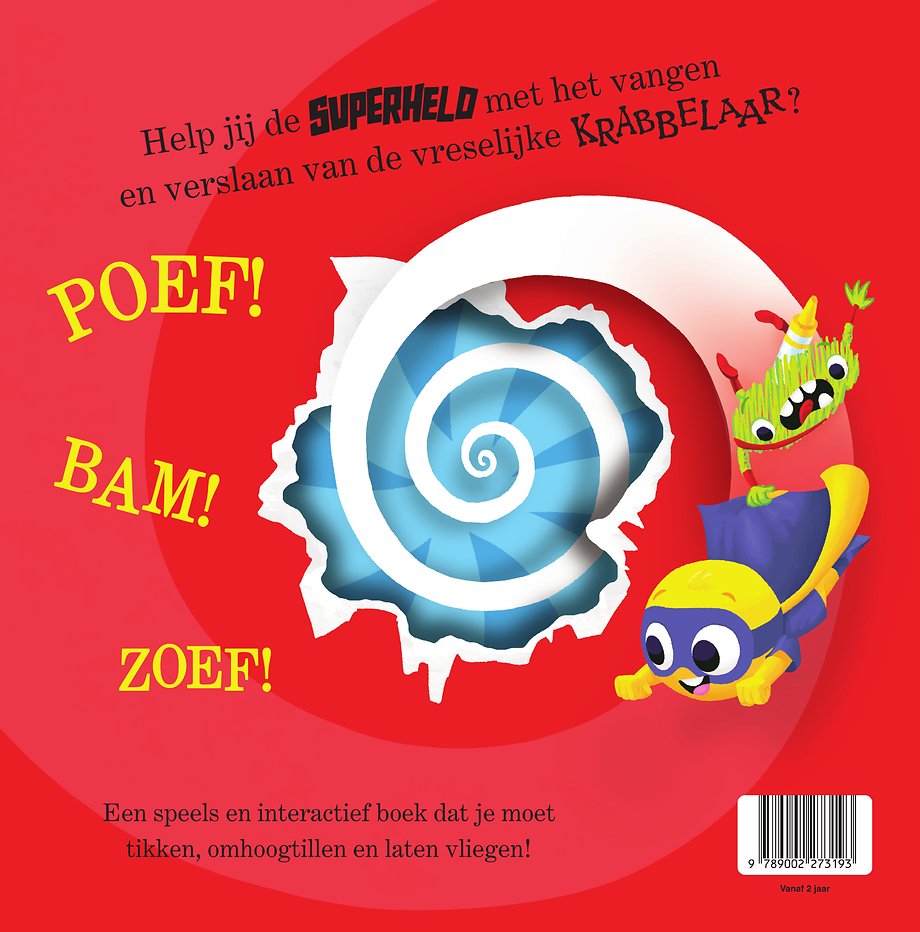 Help jij de superheld met het vangen en verslaan van de vreselijke krabbelaar? Gebruik je verbeelding en schakel de superkrachten van de superheld in. Je kan je maar beter haasten voordat de krabbelaar jouw boek helemaal heeft volgeklad!
