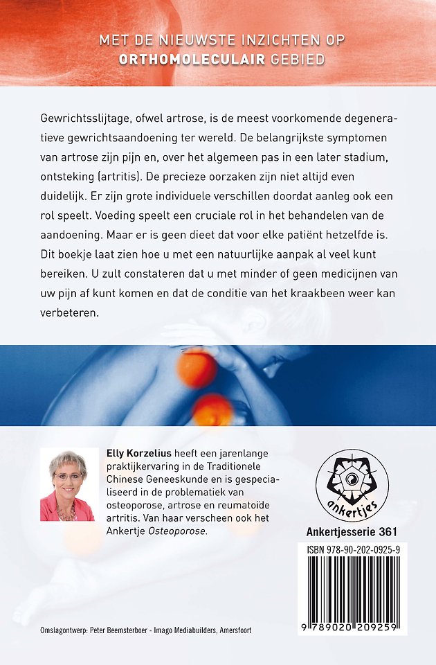 Gewrichtsslijtage, ofwel artrose, is de meest voorkomende degeneratieve gewrichtsaandoening ter wereld. De belangrijkste symptomen van artrose zijn pijn en, over het algemeen pas in een later stadium, ontsteking (artritus). De precieze oorzaken zijn niet altijd even duidelijk. Er zijn grote individuele verschillen doordat aanleg ook een rol speelt. Voeding speelt een cruciale rol in het behandelen van de aandoening. Maar er is geen dieet dat voor elke patient hetzelfde is. Dit boekje laat zien hoe u met een natuurlijke aanpak al veel kunt bereiken. U zult constateren dat u met minder of geen medicijnen van uw pijn af kunt komen en dat de conditie van het kraakbeen weer kan verbeteren.