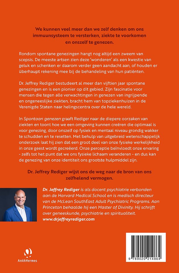 In Spontaan genezen graaft Rediger naar de diepere oorzaken van ziekten en toont hoe we een omgeving kunnen creëren die optimaal is voor genezing, door onszelf op fysiek en mentaal niveau grondig aan te pakken en te ‘herprogrammeren’. Met behulp van uitgebreid wetenschappelijk onderzoek laat hij zien dat een groot deel van onze fysieke werkelijkheid in onze geest wordt gecreëerd. Onze perceptie beïnvloedt onze ervaring, zelfs tot het punt dat we ons fysieke lichaam veranderen - en dus kan de genezing van onze identiteit ons grootste hulpmiddel zijn.