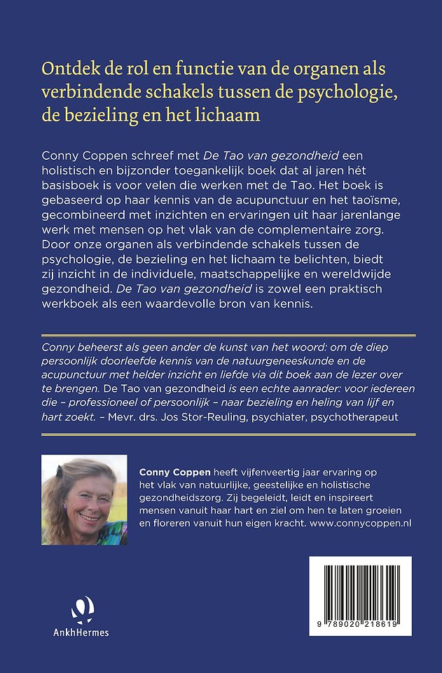 In 'De tao van gezondheid' onderstreept Conny Coppen het belang van balans, inzicht en groei. De crisis van ons persoonlijke welzijn en onze samenleving kunnen we oplossen met de holistische zienswijze van het taoïsme. Onze organen vormen de verbindende schakels tussen psychologie, bezieling en het lichaam. Wanneer zij niet goed functioneren, stagneert onze levensenergie, de bron van veel klachten op fysiek en emotioneel vlak. Een praktisch werkboek dat de kwaliteit van je leven verandert.