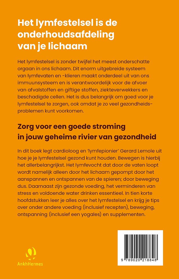 In 'Lymfe' van Gerald Lemole lees je over het lymfestelsel. Ons lymfestelsel maakt onderdeel uit van ons immuunsysteem en is een zeer onderschat orgaan. Een goede flow in deze ‘rivier van het leven’ beschermt organen en bloedvaten, zorgt voor de afvoer van afval- en giftige stoffen en brengt voedingsstoffen op de juiste plek. Door goed voor je lymfestelsel te zorgen kun je veel gezondheidsproblemen voorkomen.
