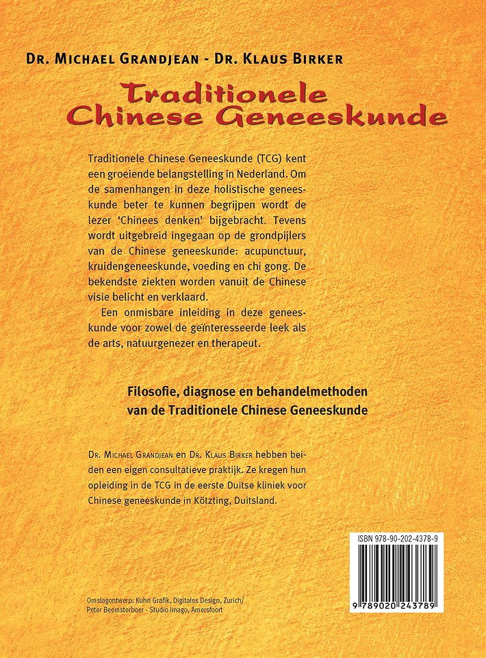 Er is steeds meer belangsteling in Nederland voor traditionele Chinese geneeskunde (TCG). TCG omvat een enorm gebied en om de samenhang in deze holistische geneeskunde beter te kunnen begrijpen wordt je 'Chinees denken' bijgebracht. Michael Grandjean en Klaus Birker behandelen de grondpijlers van de traditionele Chinese geneeskunde: acupunctuur, kruidengeneeskunde, voeding en chi gong.