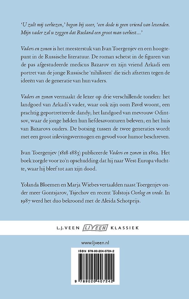 Vaders en zonen is het meesterstuk van Ivan Toergenjev en een hoogtepunt in de Russische literatuur. De roman schetst in de figuren van de pas afgestudeerde medicus Bazarov en zijn vriend Arkadi een portret van de jonge Russische 'nihilisten' die zich afzetten tegen de ideeën van de generatie van hun vaders.
