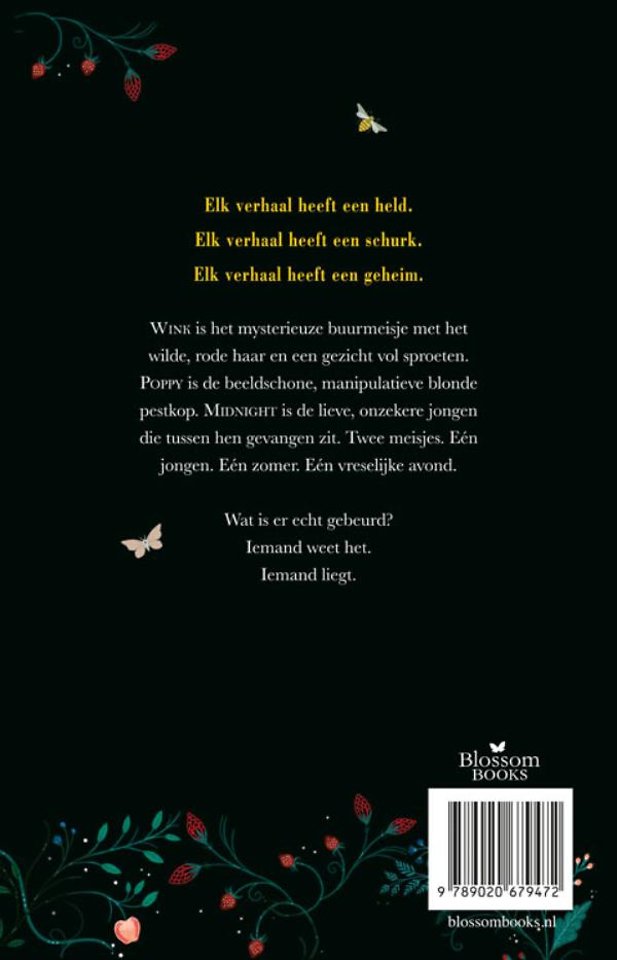 Wink is het mysterieuze buurmeisje met het wilde, rode haar en een gezicht vol sproeten. Poppy is de beeldschone, manipulatieve blonde pestkop. Midnight is de lieve, onzekere jongen die tussen hen gevangen zit. Twee meisjes. Eén jongen. Eén zomer. Eén vreselijke avond.