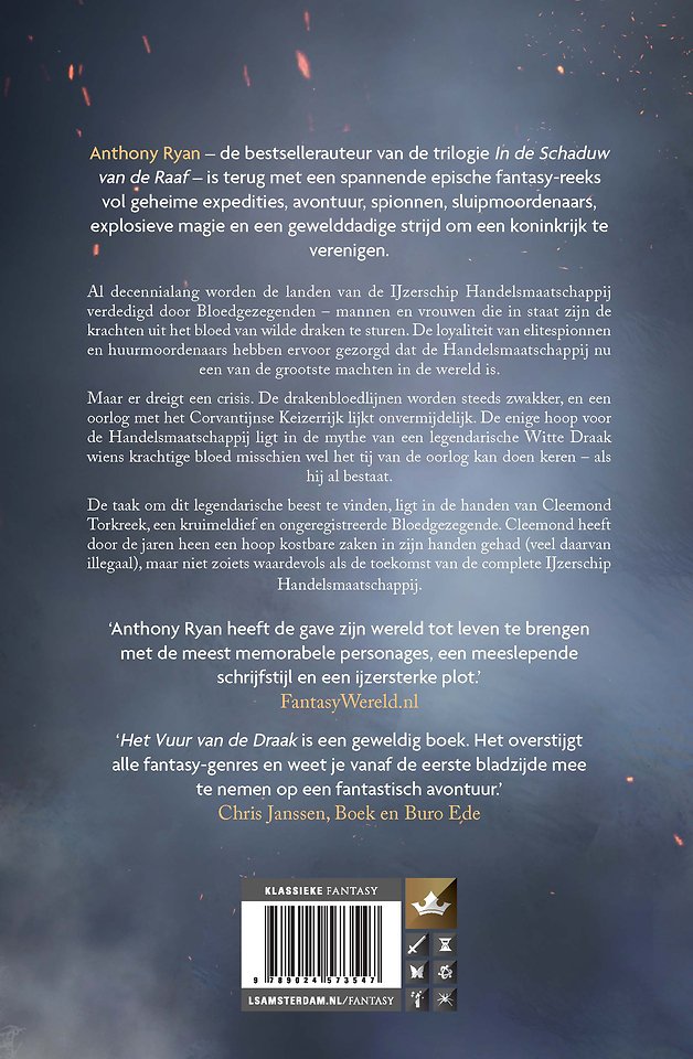 ‘Anthony Ryan heeft de gave zijn wereld tot leven te brengen met de meest memorabele personages, een meeslepende schrijfstijl en een ijzersterke plot.’ FantasyWereld.nl