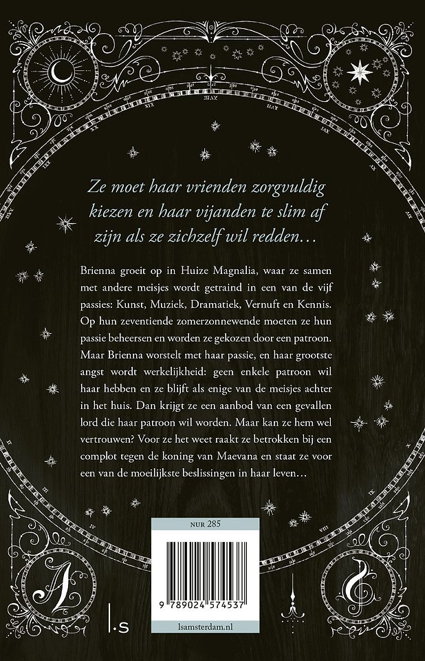 Brienna groeit op in Huize Magnalia, waar ze samen met andere meisjes wordt getraind in een van de vijf passies: Kunst, Muziek, Dramatiek, Vernuft en Kennis. De meisjes werken hard aan hun passie, zodat ze, als ze hun zeventiende zomerzonnewende vieren, door een patroon worden gekozen en financieel worden ondersteund. Maar Brienna’s leven neemt een abrupte wending als ze ongewild betrokken raakt bij een gevaarlijk complot tegen de koning van Maevana. Voor ze het weet komt ze terecht in een web van politieke intriges en staat ze voor de moeilijkste beslissing in haar leven…