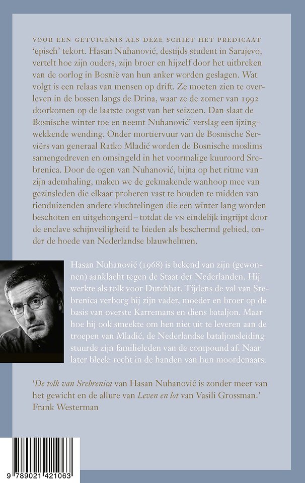 Voor een getuigenis als deze schiet het predicaat ‘episch’ tekort. Hasan Nuhanović, destijds student in Sarajevo, vertelt hoe zijn ouders, zijn broer en hijzelf door het uitbreken van de oorlog in Bosnië van hun anker worden geslagen. Wat volgt is een relaas van mensen op drift. Ze moeten zien te over¬leven in de bossen langs de Drina, waar ze de zomer van 1992 doorkomen op de laatste oogst van het seizoen. Dan slaat de Bosnische winter toe en neemt Nuhanović’ verslag een ijzing¬wekkende wending. Onder mortiervuur van de Bosnische Ser¬viërs van generaal Ratko Mladić worden de Bosnische moslims samengedreven en omsingeld in het voormalige kuuroord Sre¬brenica. Door de ogen van Nuhanović, bijna op het ritme van zijn ademhaling, maken we de gekmakende wanhoop mee van gezinsleden die elkaar proberen vast te houden te midden van tienduizenden andere vluchtelingen die een winter lang worden beschoten en uitgehongerd – totdat de VN eindelijk ingrijpt door de enclave schijnveiligheid te bieden als beschermd gebied, on-der de hoede van Nederlandse blauwhelmen.