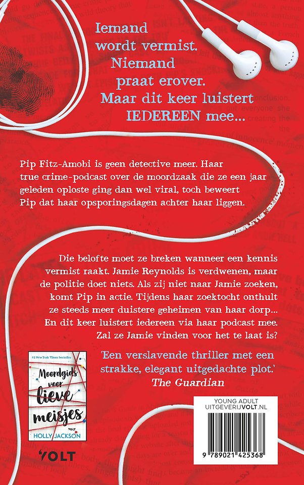 Die belofte moet ze breken wanneer een kennis vermist raakt. Jamie Reynolds is verdwenen, maar de politie doet niets. En als zíj niet naar Jamie zoeken, komt Pip in actie. Tijdens haar zoektocht onthult ze steeds meer duistere geheimen van haar dorp… En dit keer luistert iedereen mee via haar podcast. Zal ze Jamie vinden voor het te laat is?
