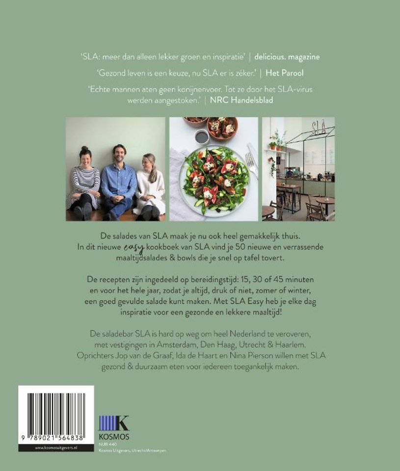 De hippe saladebar SLA (op social media te vinden als ilovesla) is hard op weg heel Nederland te veroveren, met vestigingen in Amsterdam, Utrecht, Den Haag en Haarlem. Eerder verscheen het kookboek met recepten SLA: een handboek voor groen, gezond en geweldig lekker eten.