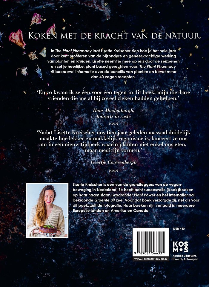In The Plant Pharmacy laat Lisette Kreischer zien hoe je het hele jaar door kunt profiteren van de bijzondere en geneeskrachtige werking van planten en kruiden. Lisette neemt je mee op reis door de seizoenen en zet je heerlijke, plant based gerechten voor. The Plant Pharmacy zit boordevol informatie over de benefits van planten en bevat meer dan 40 vegan recepten.