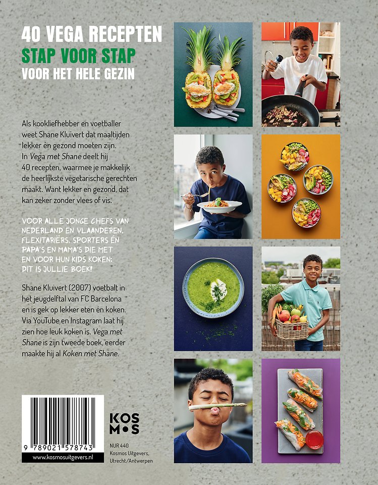 Als kookfanaat en sporter weet Shane Kluivert dat maaltijden lekker én gezond moeten zijn. In Vega met Shane deelt hij 40 vega recepten, waarmee hij je stap voor stap de lekkerste vegetarische gerechten leert maken. Want lekker en gezond, dat kan af en toe ook zeker zonder vlees of vis. Voor alle jonge chefs van Nederland en Vlaanderen, flexitariërs, sporters, papa’s en mama’s die met en voor hun kids koken: dit is jullie boek!