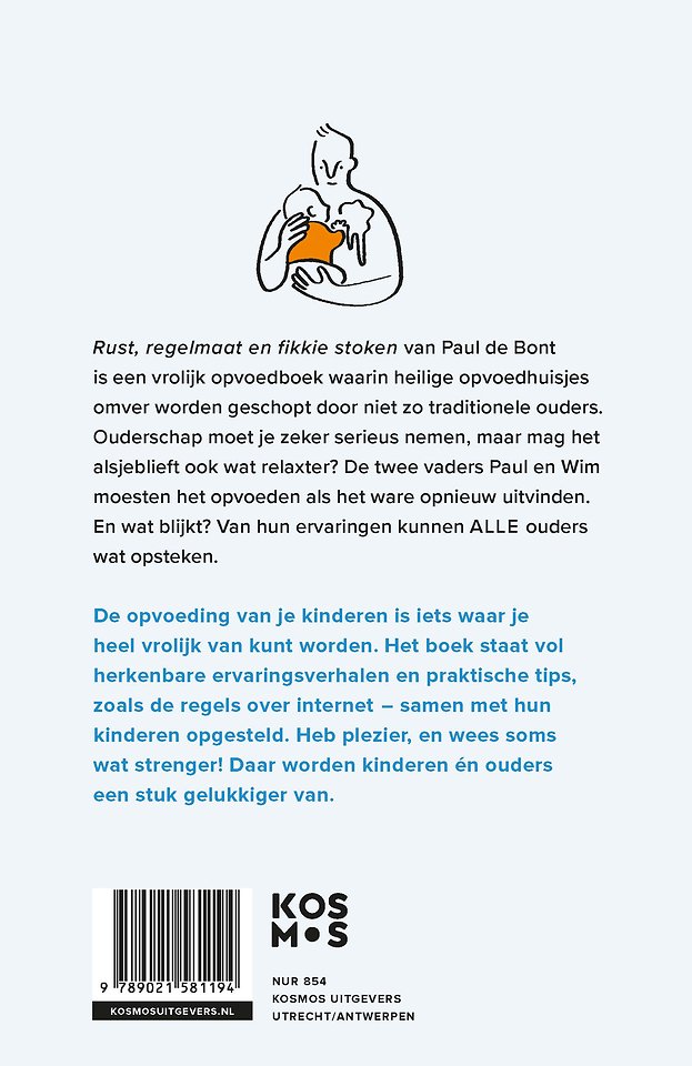 'Rust, regelmaat en fikkie stoken' van Paul de Bont is een vrolijk opvoedboek waarin heilige opvoedhuisjes omver worden geschopt door niet zo traditionele ouders. Ouderschap moet je zeker serieus nemen, maar mag het alsjeblieft ook wat relaxter? De twee vaders Paul en Wim moesten het opvoeden als het ware opnieuw uitvinden. En wat blijkt? Van hun ervaringen kunnen ALLE ouders wat opsteken. De opvoeding van je kinderen is iets waar je heel vrolijk van kunt worden.