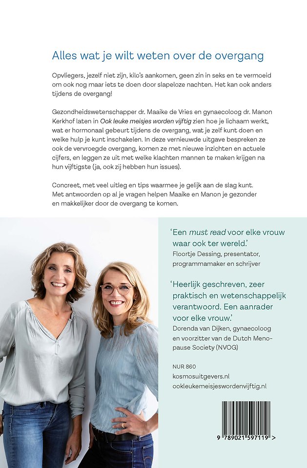 Gezondheidswetenschapper dr. Maaike de Vries en gynaecoloog dr. Manon Kerkhof laten in dit boek zien hoe je lichaam werkt, wat er met je hormonen gebeurt, wat je zelf kunt doen en welke hulp je kunt inschakelen. Concreet, praktisch, en (h)eerlijk nuchter met veel uitleg en tips waarmee je gelijk aan de slag kunt. Populair-journalistiek geschreven, zeer toegankelijk én goed wetenschappelijk onderbouwd.